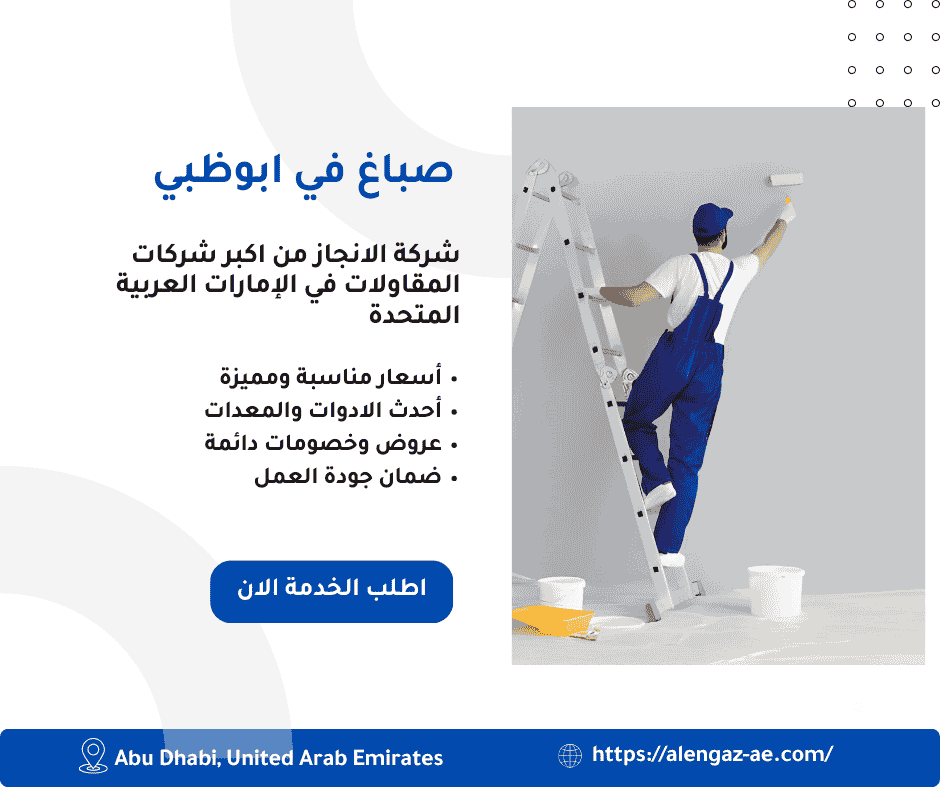 هل تبحث عن صباغ في ابوظبي يقدم خدمات احترافية تجعل منزلك يبدو كأنه تحفة فنية؟ هل ترغب في تجديد ديكور جدران منزلك أو مكتبك بأحدث الألوان والتصاميم المودرن؟ إذا كنت تسعى للحصول على افضل نتيجة بجودة عالية وأسعار مناسبة، فأنت في المكان المناسب! هنا في ابوظبي، نقدم لك خدمات صباغة متميزة تضيف لمسات جمالية تدوم طويلاً. مع فريق من افضل صباغين في الإمارات ، نضمن لك تجربة فريدة باستخدام أحدث تقنيات الصباغة  التي تلبي جميع احتياجاتك. لماذا تنتظر؟ تواصل واكتشف كيف يمكننا تحويل مساحتك إلى لوحة فنية بأفضل الألوان!